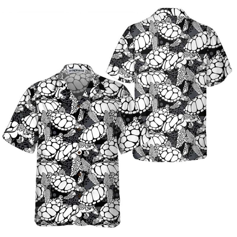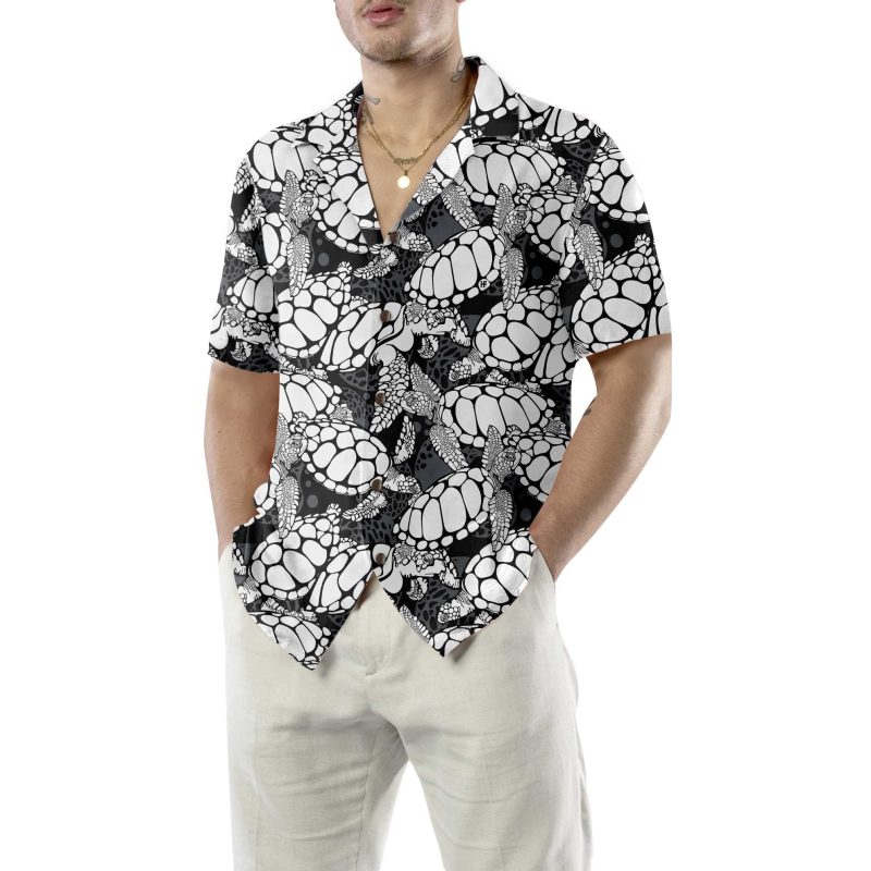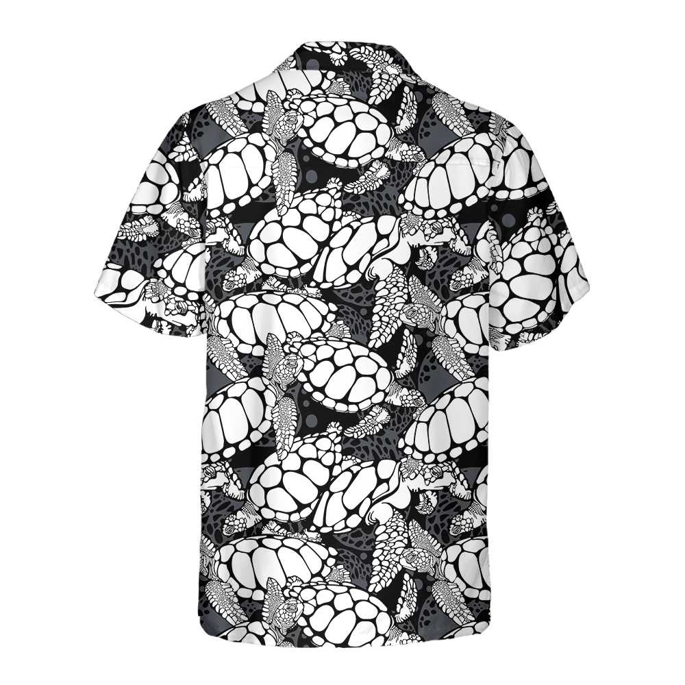 Monogram Sea Turtle Pattern Hawaiian Shirt, Black And White Turtle Seamless Pattern Shirt, Cool Turtle Shirt