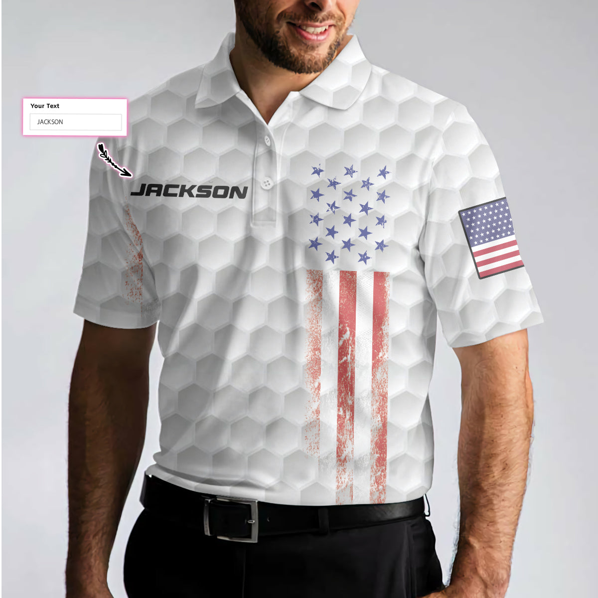 Personalized Golf 4th Of July Custom Polo Shirt, Personalized White American Flag Golf Shirt For Men